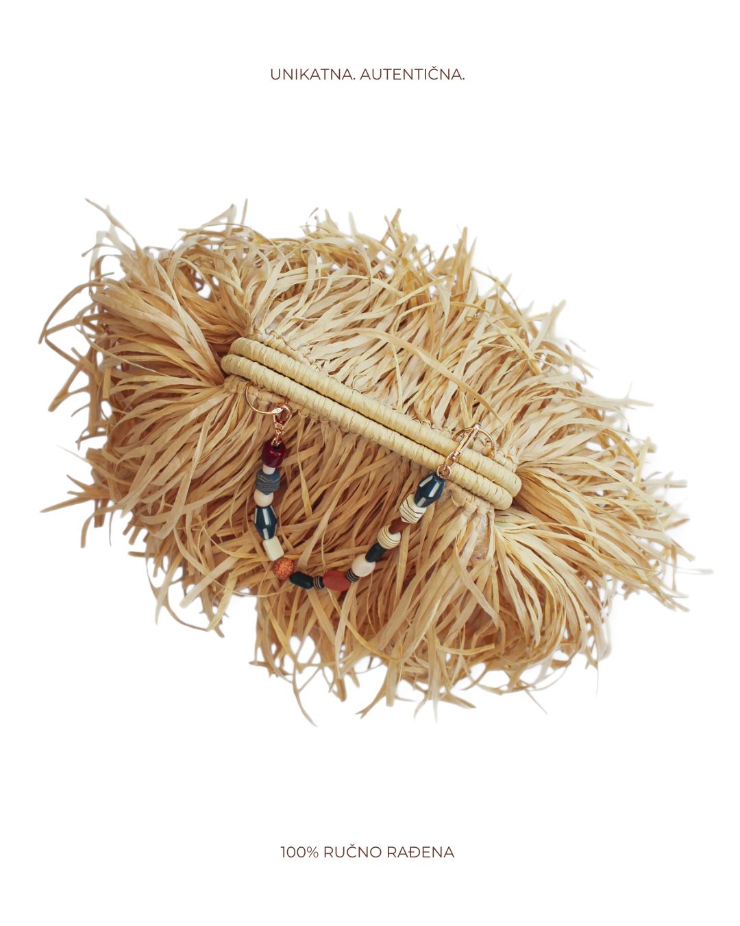 Handmade letnja clutch torba sa resama od rafije.