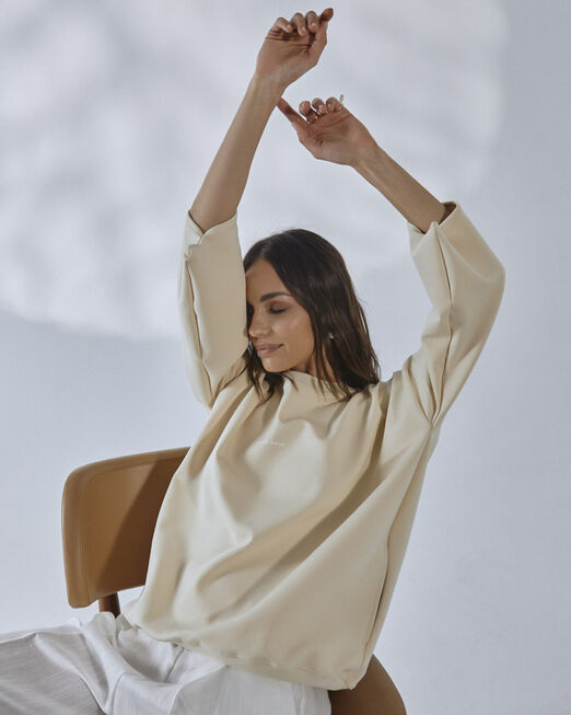 Kimono dukserica od mekog pamuka kombinuje udobnost i eleganciju. Široki okovratnik i slobodan kroj pružaju stil, pokret i lakoću svakog dana.