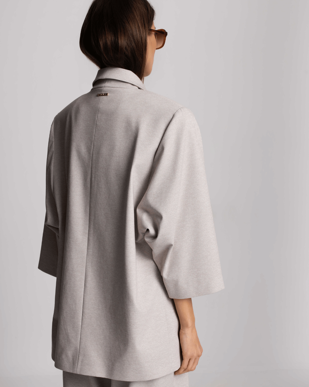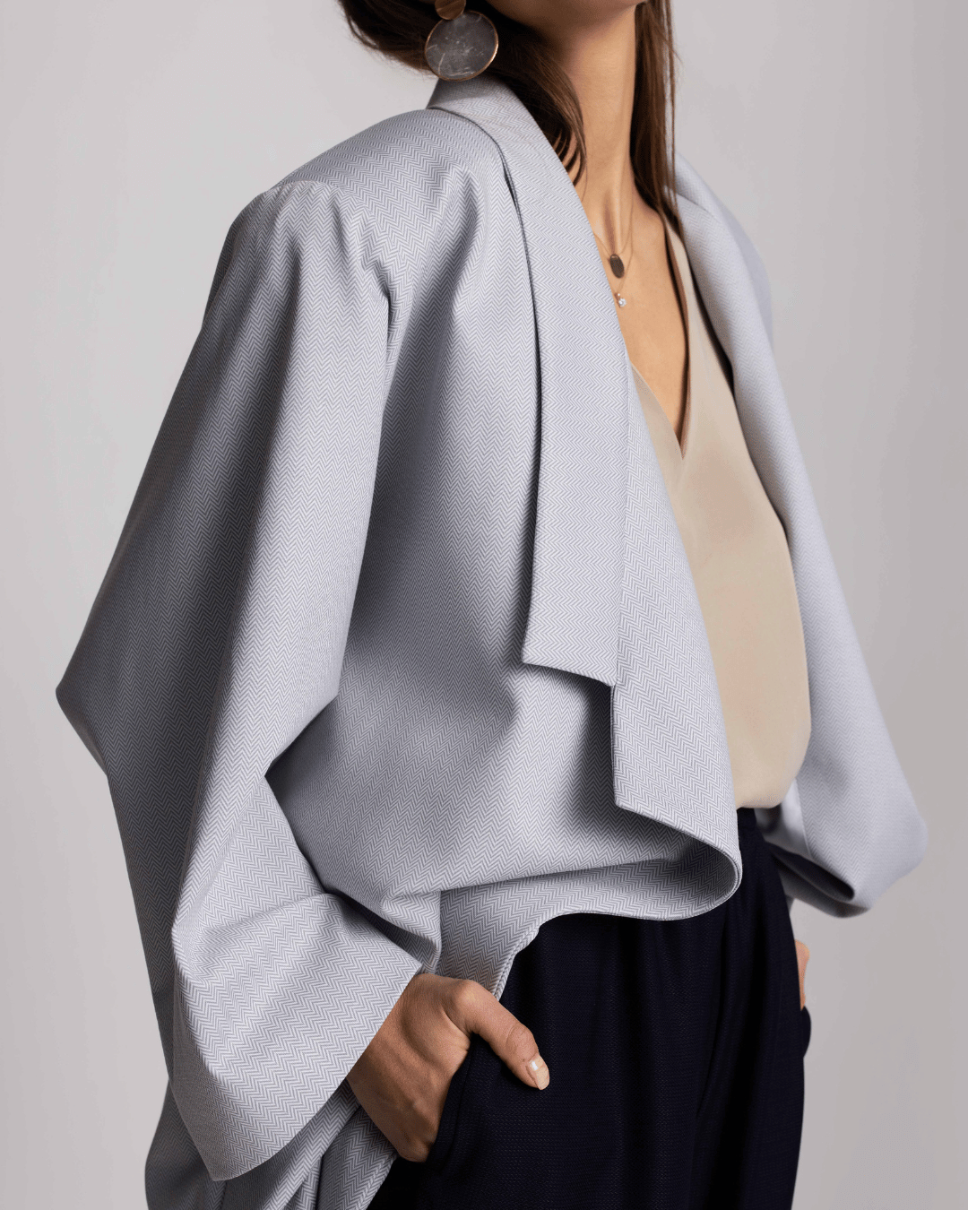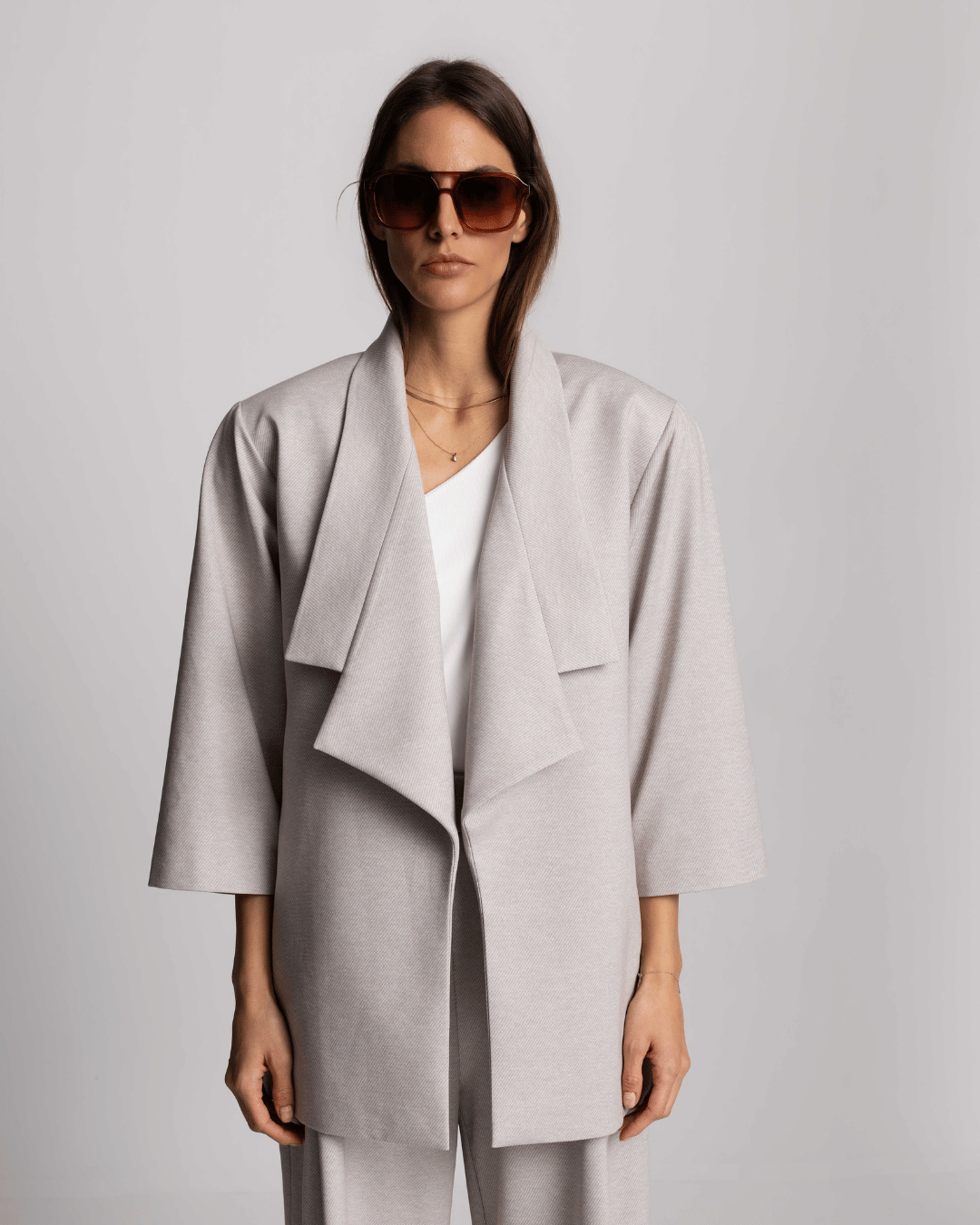 Elegantna ženska jakna u dostupna u pet boja, lagane strukture i opuštene siluete, izrađena od mešavine sirove svile i viskoze, idealna za dnevne i večernje kombinacije.