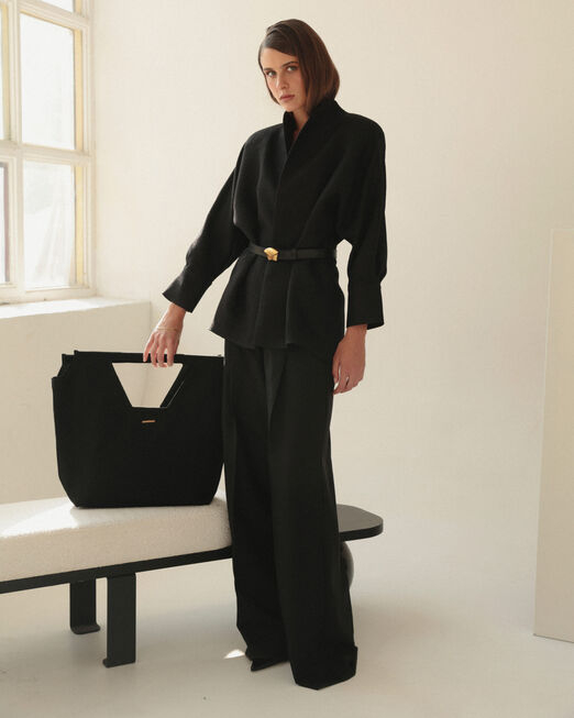 Minimalistički sako od vune koji kombinuje čiste linije i bezvremensku eleganciju.
