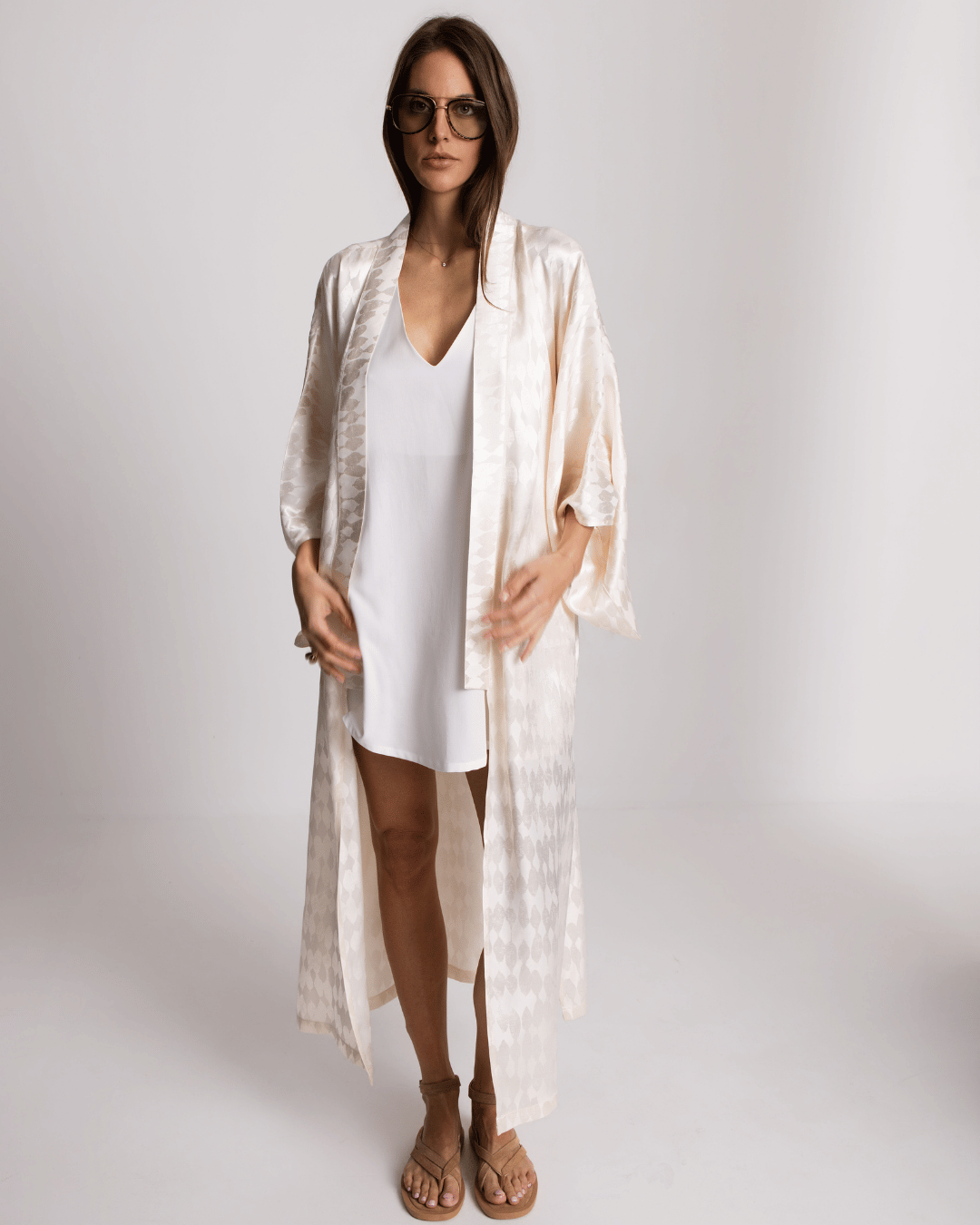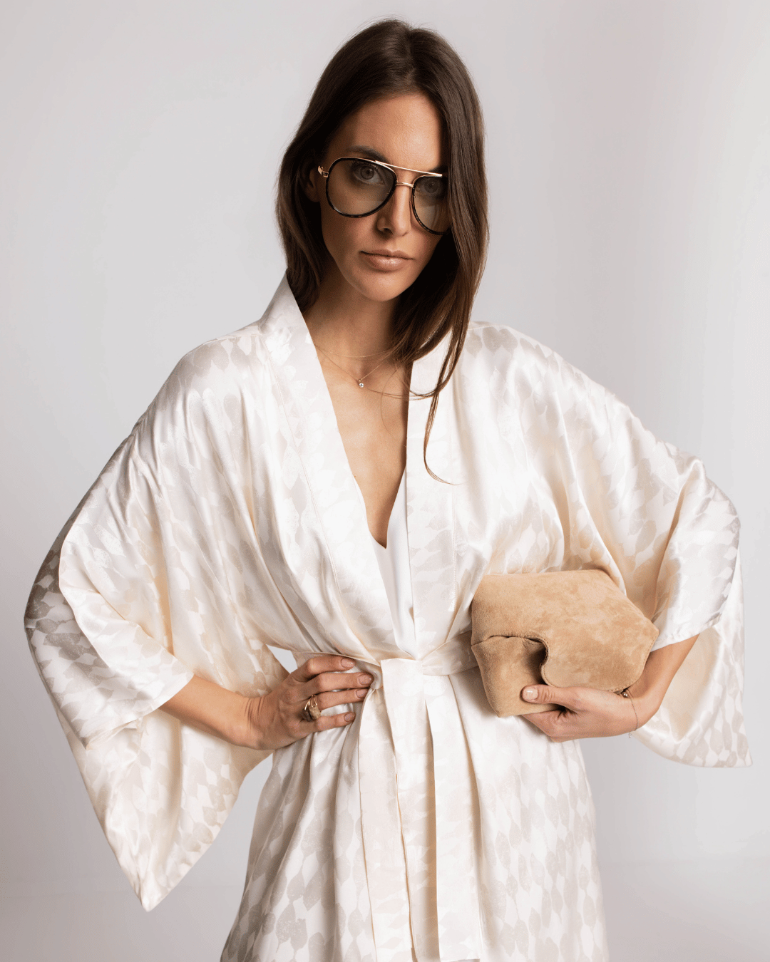 MATERIJAL: 100% viskoza Kimono PERLA je lagani ženski kimono u bisernoj nijansi izrađen od 100% viskoze. Otvorenog je kroja, ima široke rukave i free size veličinu, zbog čega je praktičan i lak za stilizovanje tokom leta.