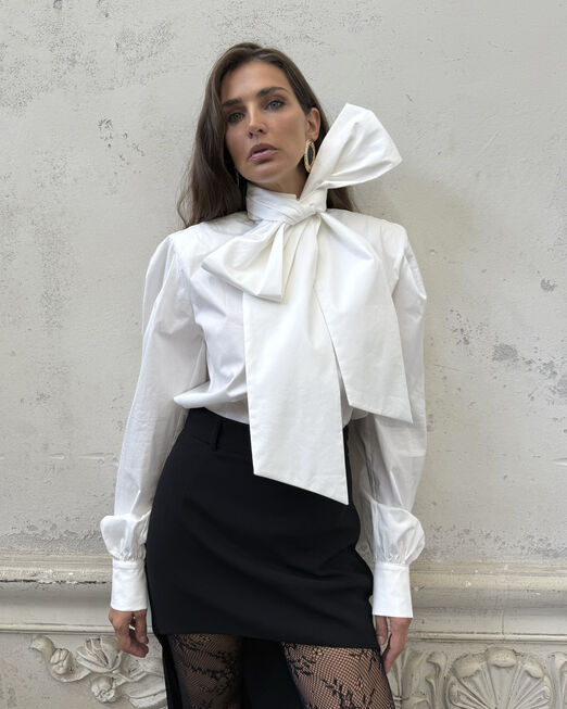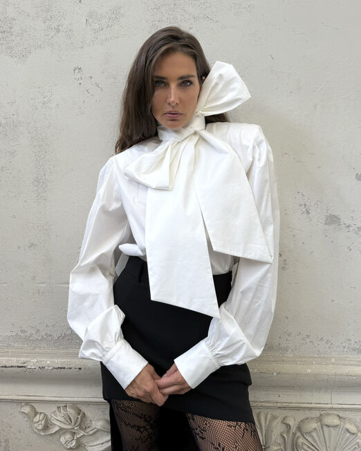 MATERIJAL: 100 % pamuk ODRŽAVANJE: Mašinsko pranje na 40′ sa sličnim bojama. OPIS: Predimenzionirana košulja sa naglašenim ramenima. Naramenice se mogu skinuti po potrebi. Završeno sa manžetnama na rukavima, skrivenim kopčanjem sa prednje strane i uspravnim okovratnikom sa dugom trakom za vezivanje. Smela, ali razigrana — nikada stidljiva, uvek upečatljiva. NAPOMENA: VELIČINE XS I L SE RADE PO NARUDŽBINI // Biće spreman za slanje u roku od 5 radnih dana.