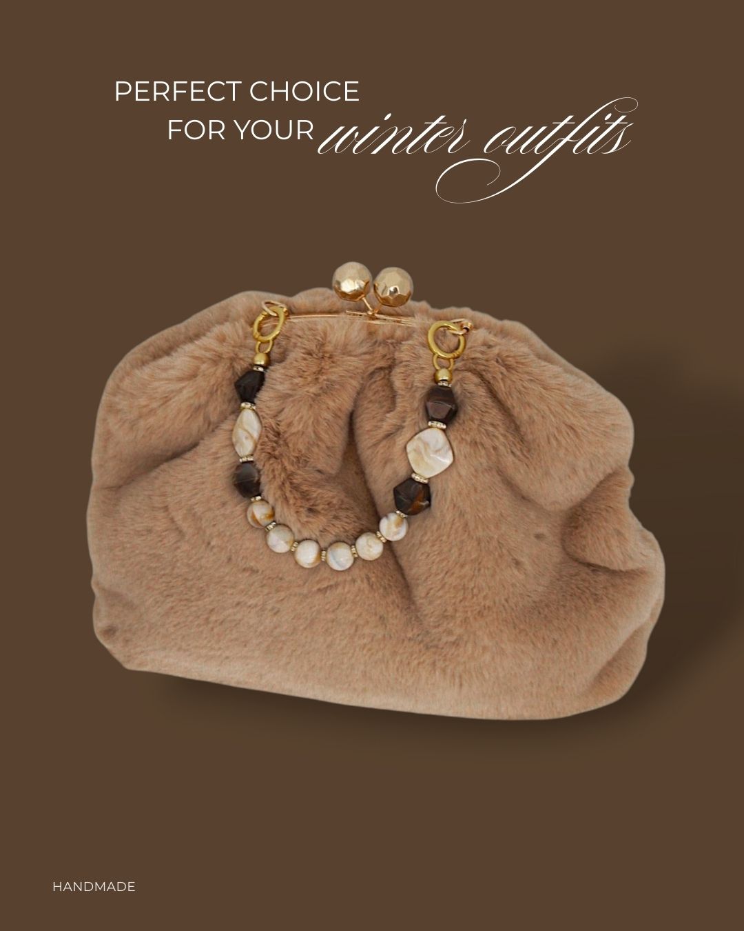 Krznena zimska torba kapućino boje Clutch krznena torba Torba od krzna Clutch zimska torba