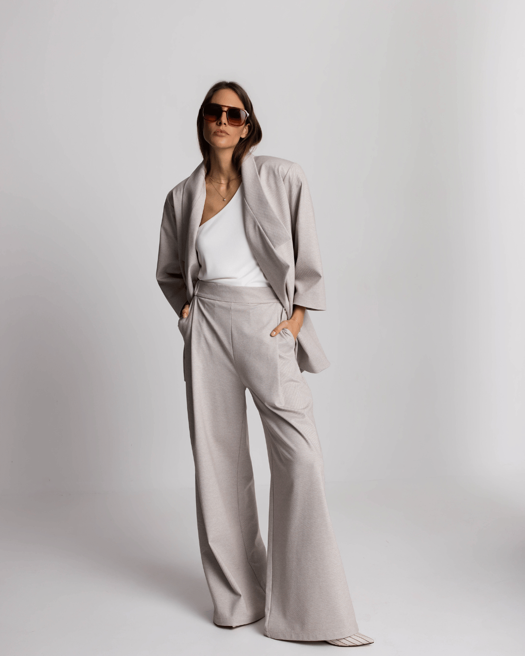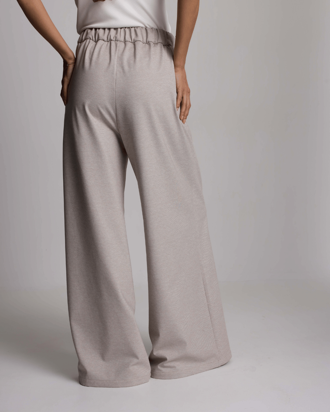 Materijal: 50% pamuk, 40% poliester, 10% elastin Ikona pantalone u brenda People Like Us osmišljene su za žene koje vole komade koji izgledaju sređeno, a nose se lako. Imaju lagan, fluidan pad koji lepo prati pokret, dok elastičan pojas doprinosi udobnosti tokom celog dana. Zbog čistog kroja i neutralne nijanse lako se kombinuju uz košulje, topove, blejzer ili laganu jaknu, pa su dobar izbor za poslovne sastanke, večere, putovanja i moderan city styling Održavanje: hemijsko čišćenje, peglanje na niskoj temperaturi, ne izbeljivati