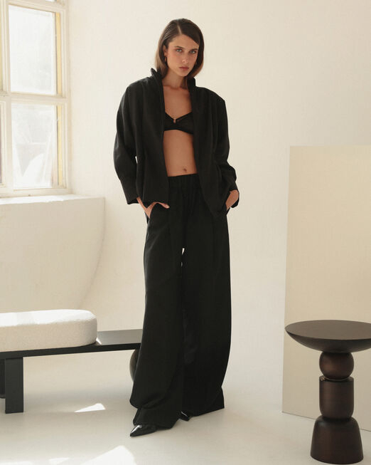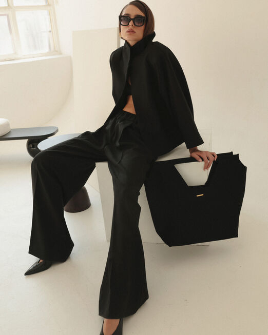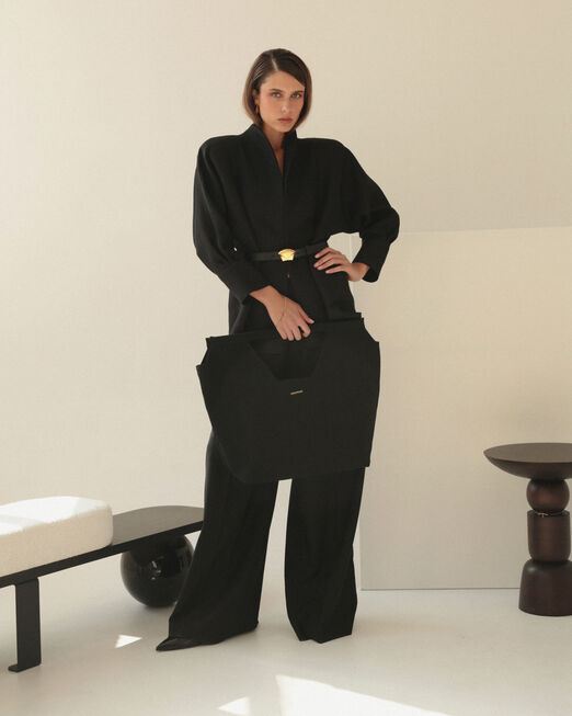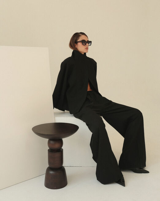 Elegantne Dina vunene pantalone sa širokim nogavicama — bezvremenski komad koji spaja udobnost i sofisticiranost.