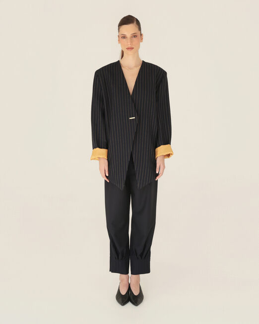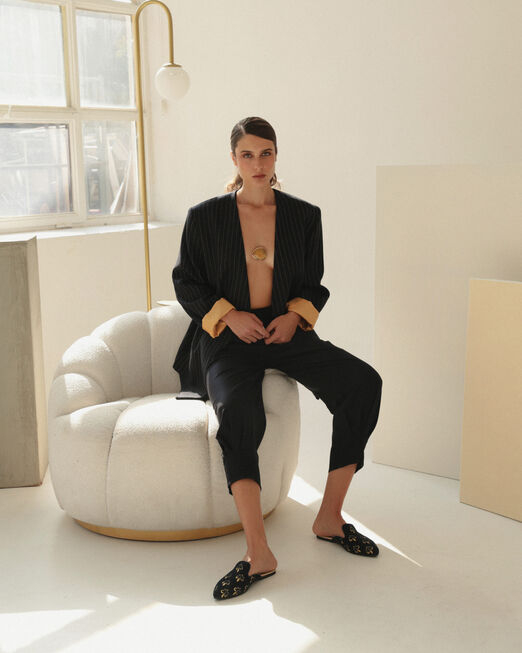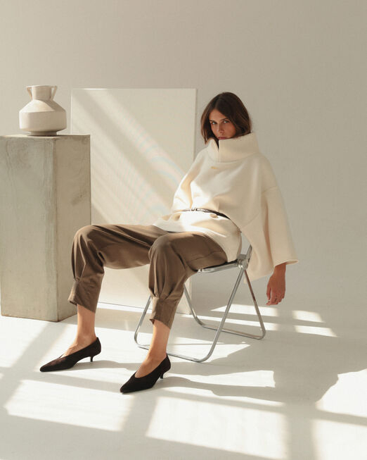 Elegantne pantalone koje podižu svaku jesenju i zimsku kombinaciju. Napravljene od mešavine lana, viskoze i čiste runske vune za udobnost i sofisticiran izgled.