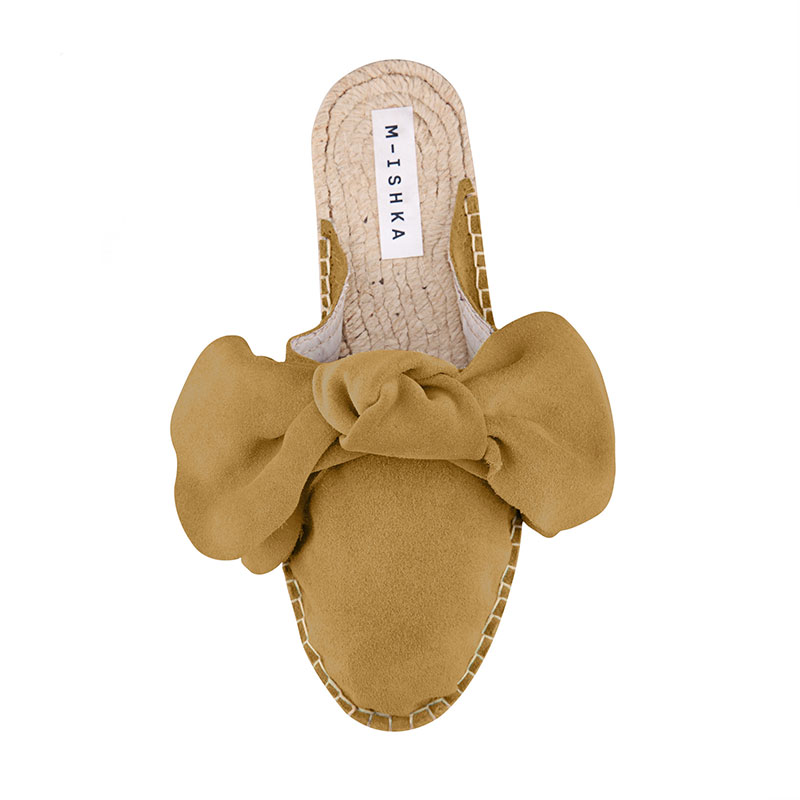 Ručno izrađene papuče od antilopa sa velikom mašnom koja se ne skida.