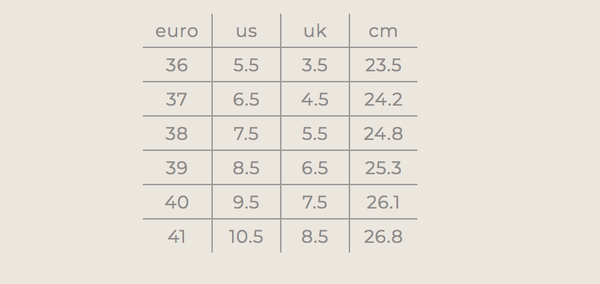 MATERIJAL: Gornji deo od antilopa, unutrašnje ojačanje pamukom, unutrašnji đon od jute, spoljni đon od jute i prirodne gume; DETALJI: Slip on Visina đona - 18 mm dodatno ojačanje na peti 2 mm Svaki par espadrila će se blago rastegnuti od nošenja i prilagoditi obliku vaših stopala, jer su napravljene od prirodnih materijala. OPIS: Dizajnirane da pruže udobnost, koliko i jedinstven retro šik izgled. Svaki par je postavljen na đon od prirodne pletenice od jute sa gumenom podlogom otpornom na klizanje. NAPOMENA: Molimo vas da pogledate tabelu veličina. Preporučujemo da naručite jednu veličinu veću od vaše uobičajene.