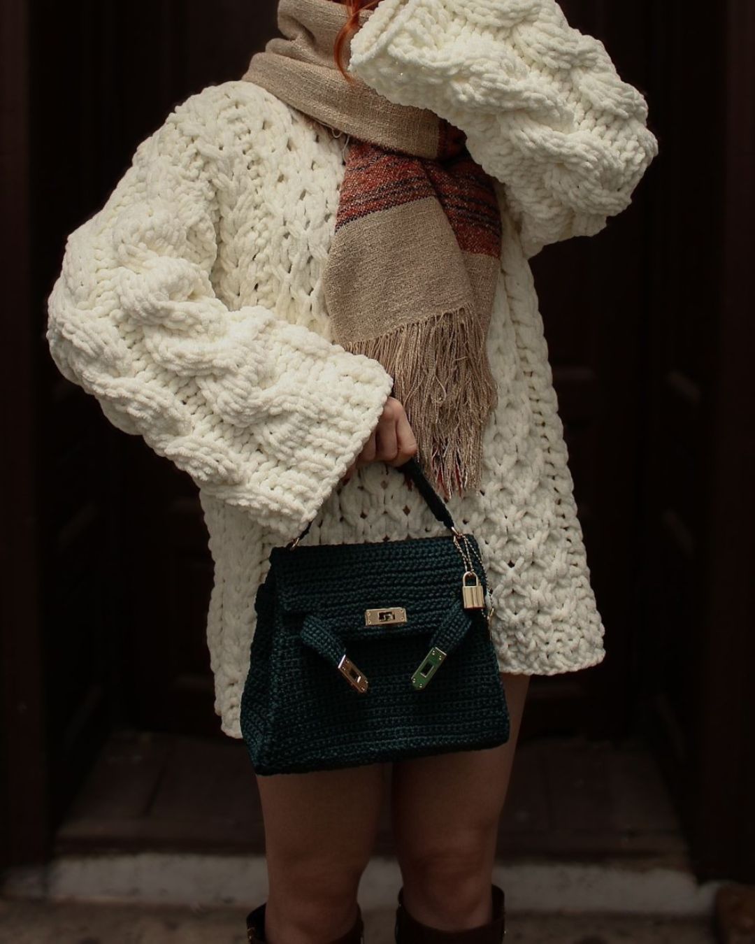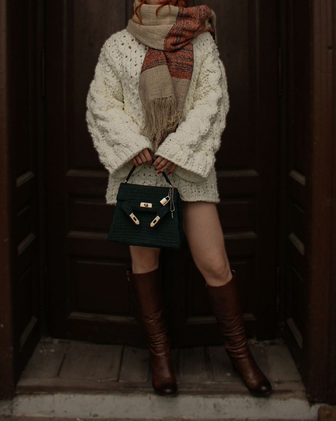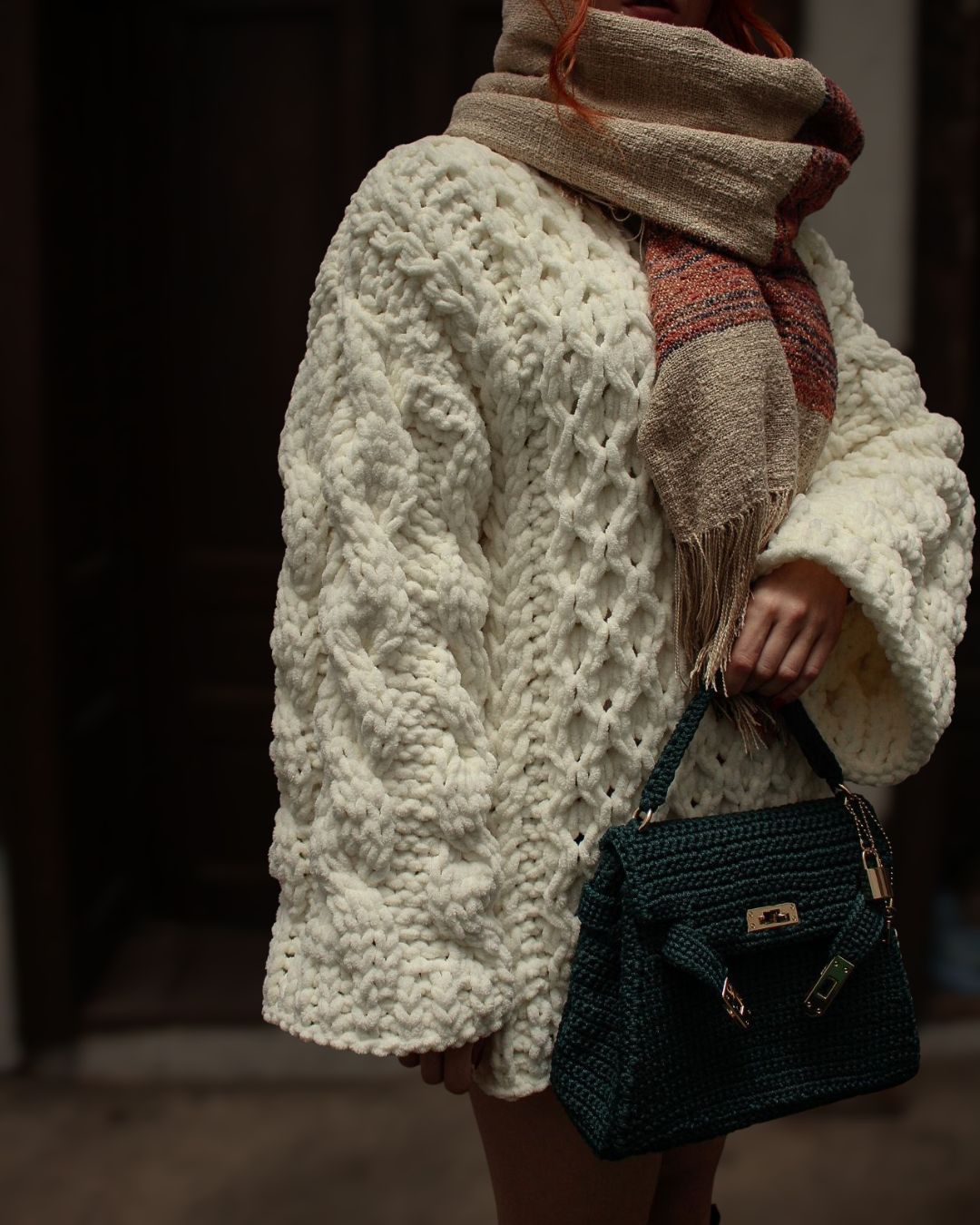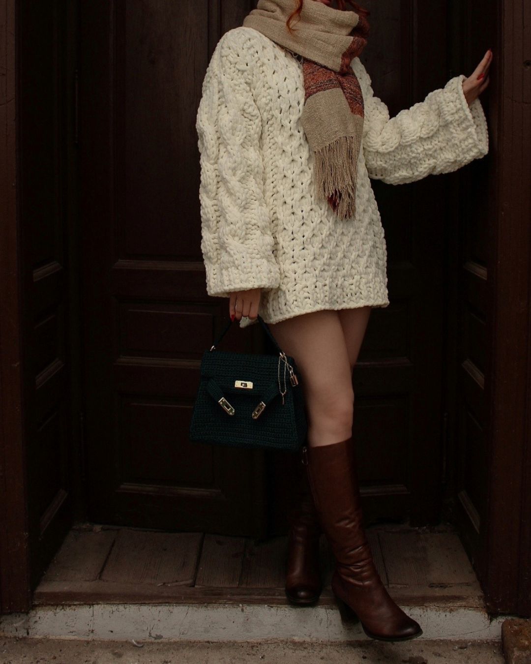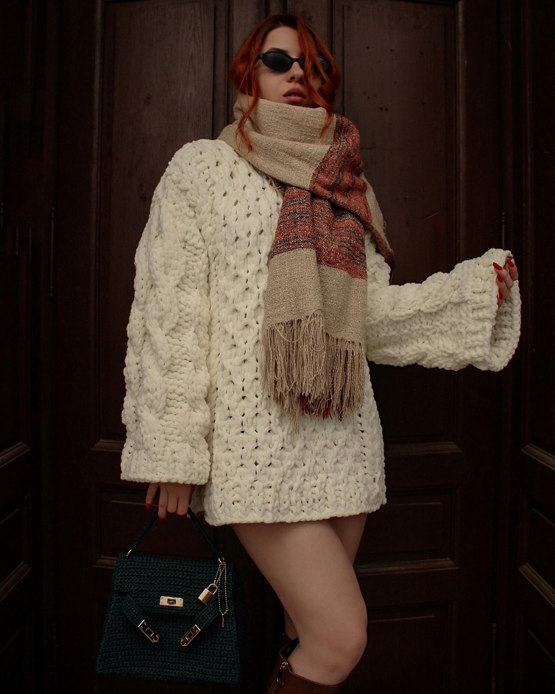 Pletena džemper haljina Kratka pletena haljina Zimska haljina Zimski džemper Heklana zimska tunika Oversize zimski ženski džemper sa pletenicama