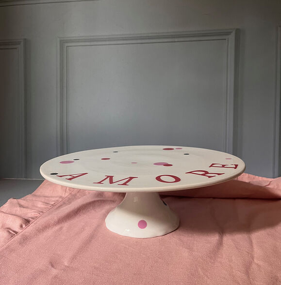 SASTAV: Beli porcelan MATERIJAL: visokokvalitetni česki keramika otporna na toplotu ODRŽAVANJE: Bezbedno prati u mašini za sudove. Ograničen broj pranja. DIMENZIJE: visina 11cm, širina 29,5cm; Idealna za torte širine 29,5cm ; OPIS: Ukrašavaj i spremaj poslastice kao profesionalac.Stalak za tortu „Amore”. Napravljen je od porcelana, dizajniran je unikatno i ručno oslikan. Odlična ideja za kolače pripremljene za vaš rođendan, za različite kolačiće ili za desert na vašem trpezarijskom stolu. Ploča je vrlo elegantnog i jednostavnog okruglog oblika, privućiće pažnju svojim izgledom na proslavi. NAPOMENA: REMAKE PORCELAN JE SAVRŠENO NESAVRŠEN - svaki komad se pravi ručno i drugačiji je na svoj način.