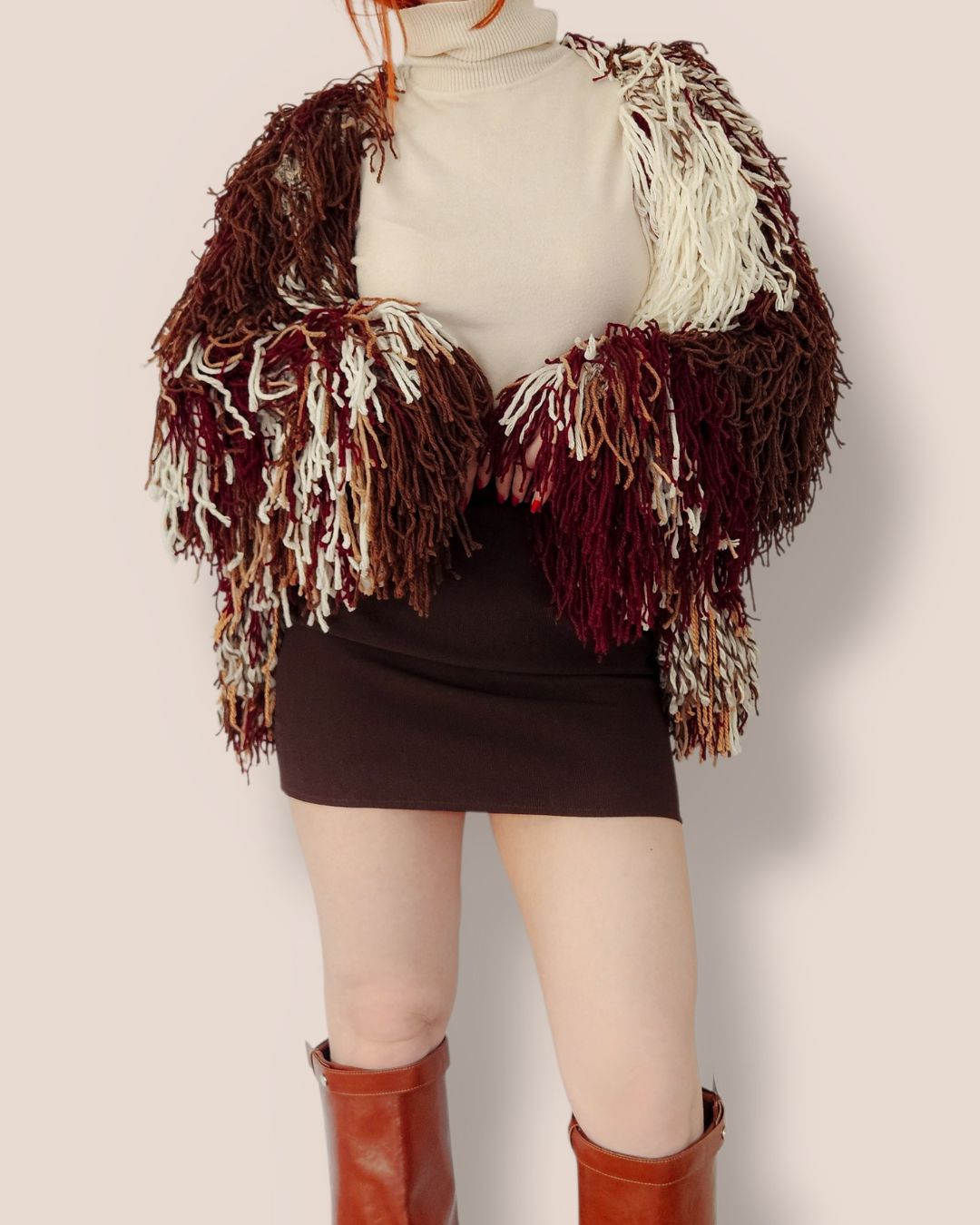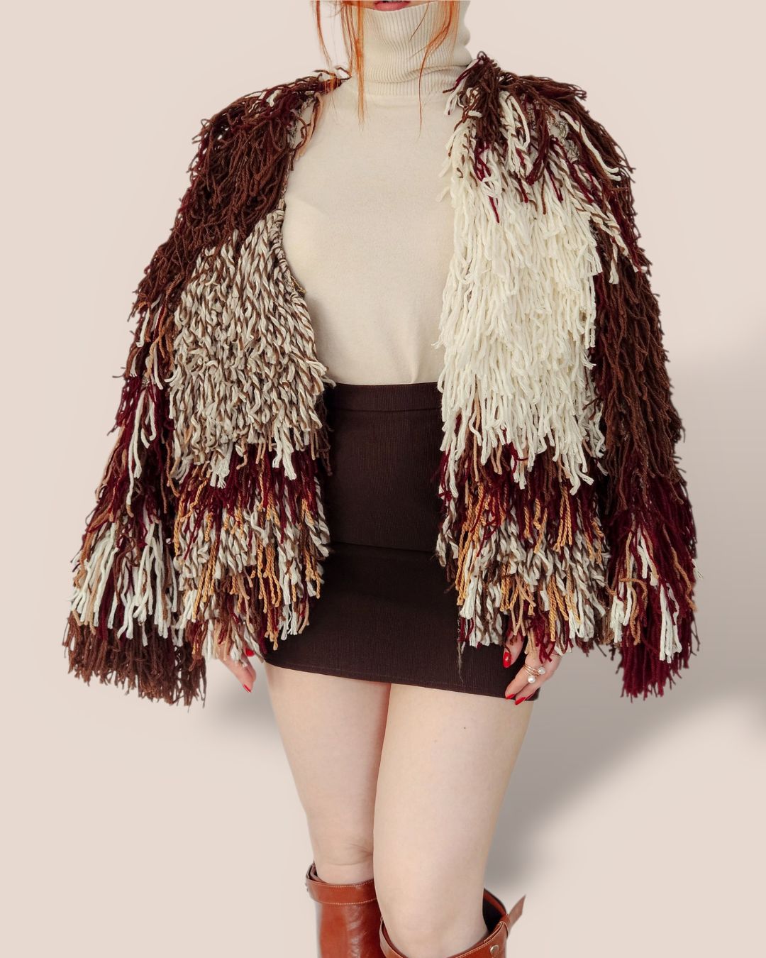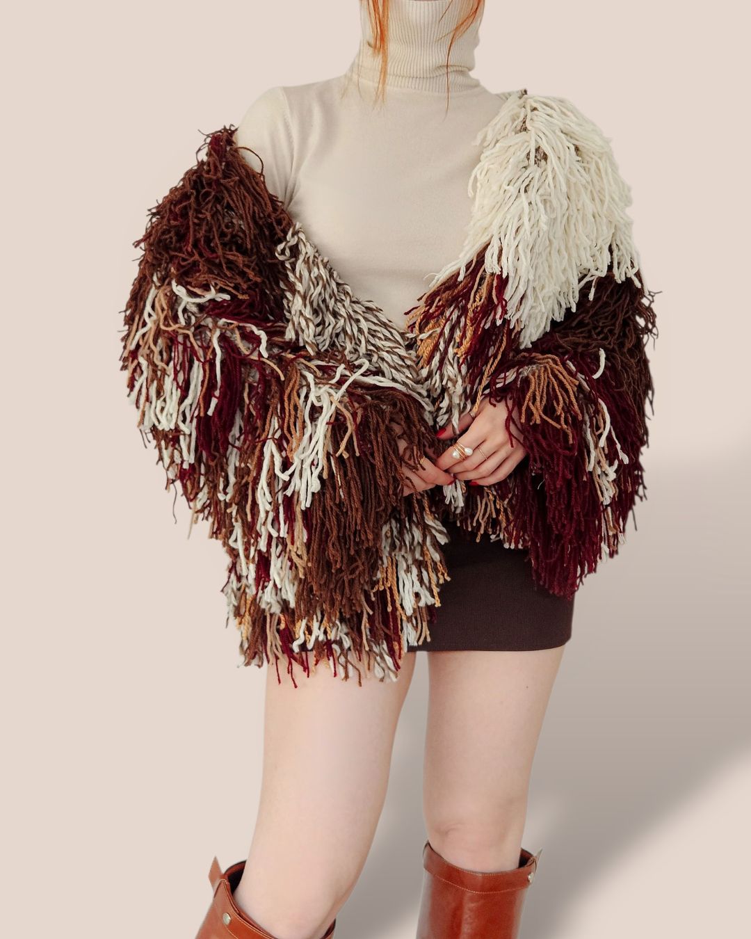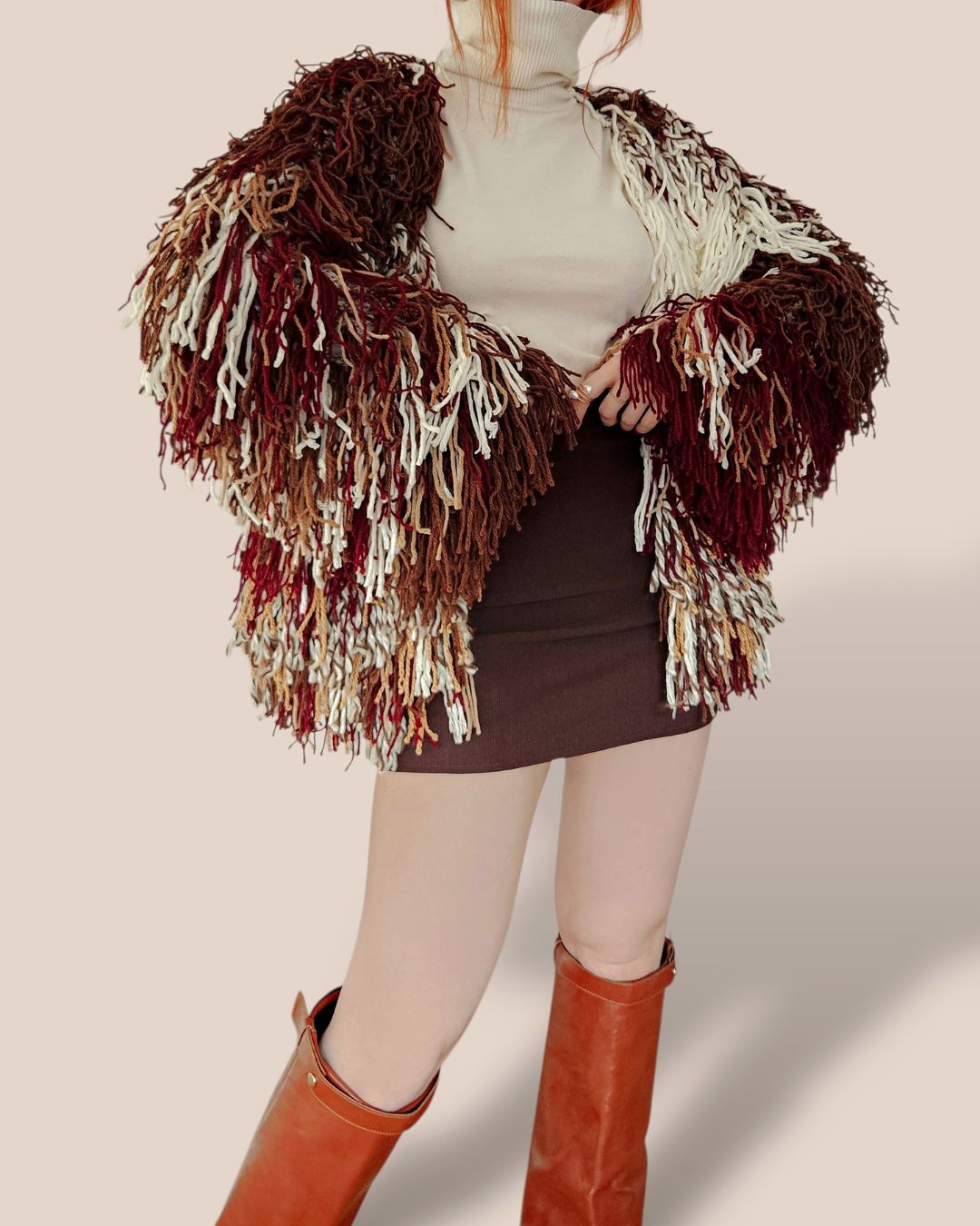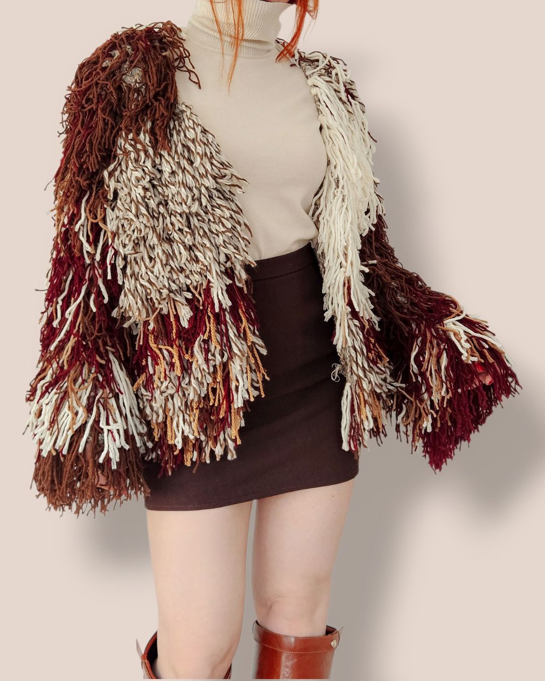 UNIKAT Ženska čupava jakna sa resama Kardigan sa resama Jakna sa resama Handmade čupavi kardigan sa resama