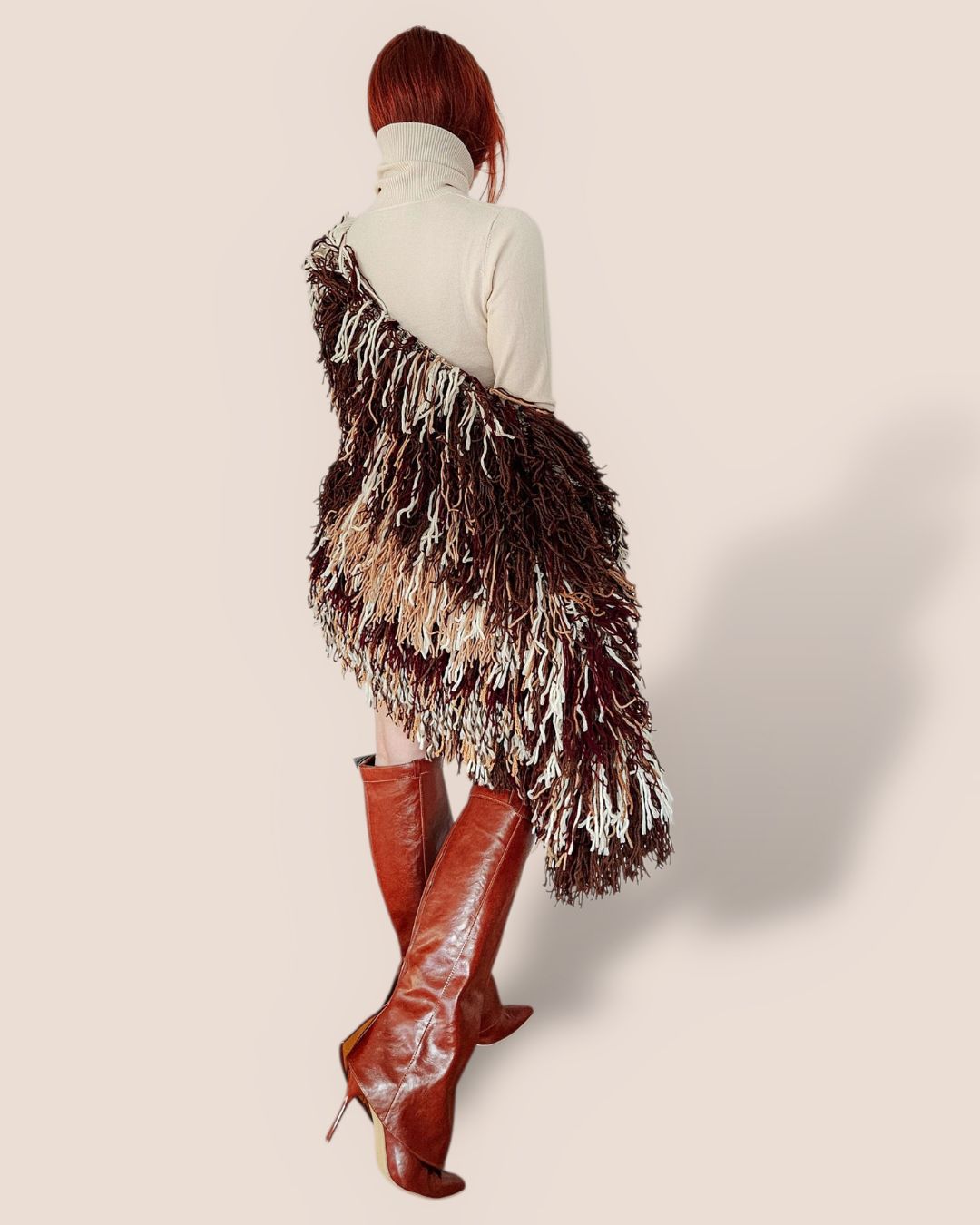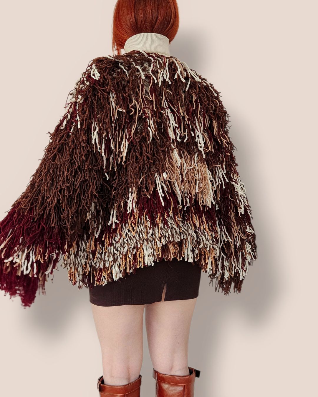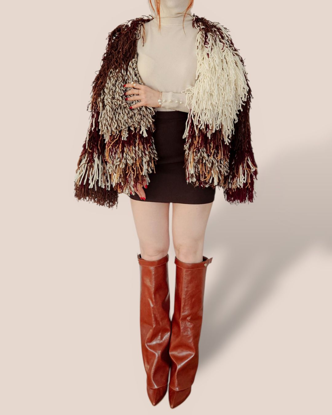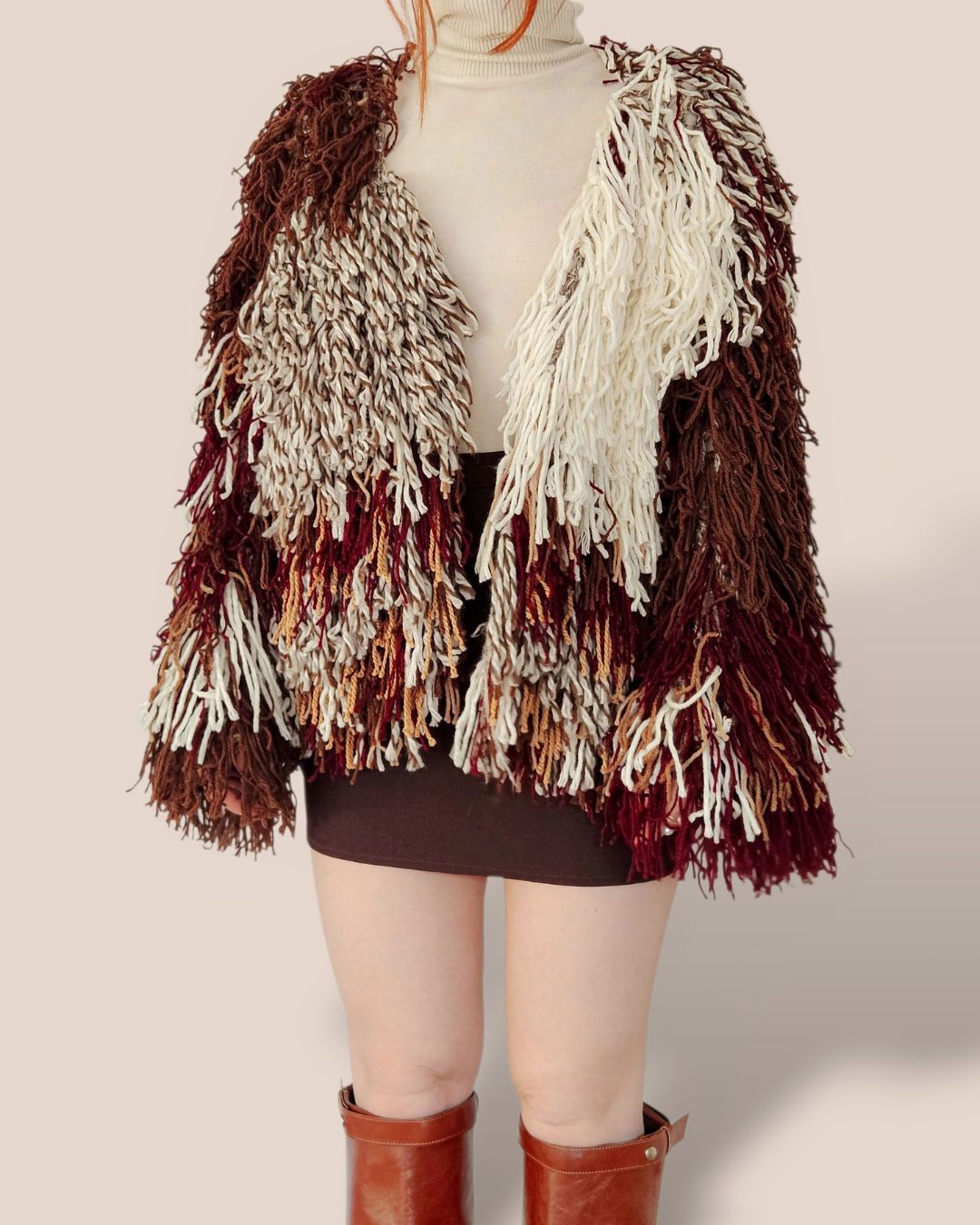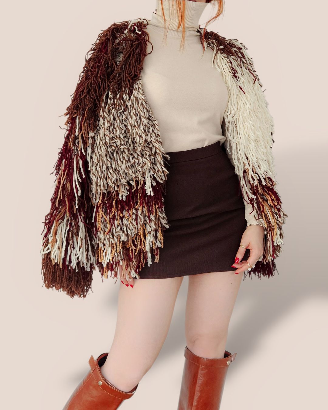 UNIKAT Ženska čupava jakna sa resama Kardigan sa resama Jakna sa resama Handmade čupavi kardigan sa resama