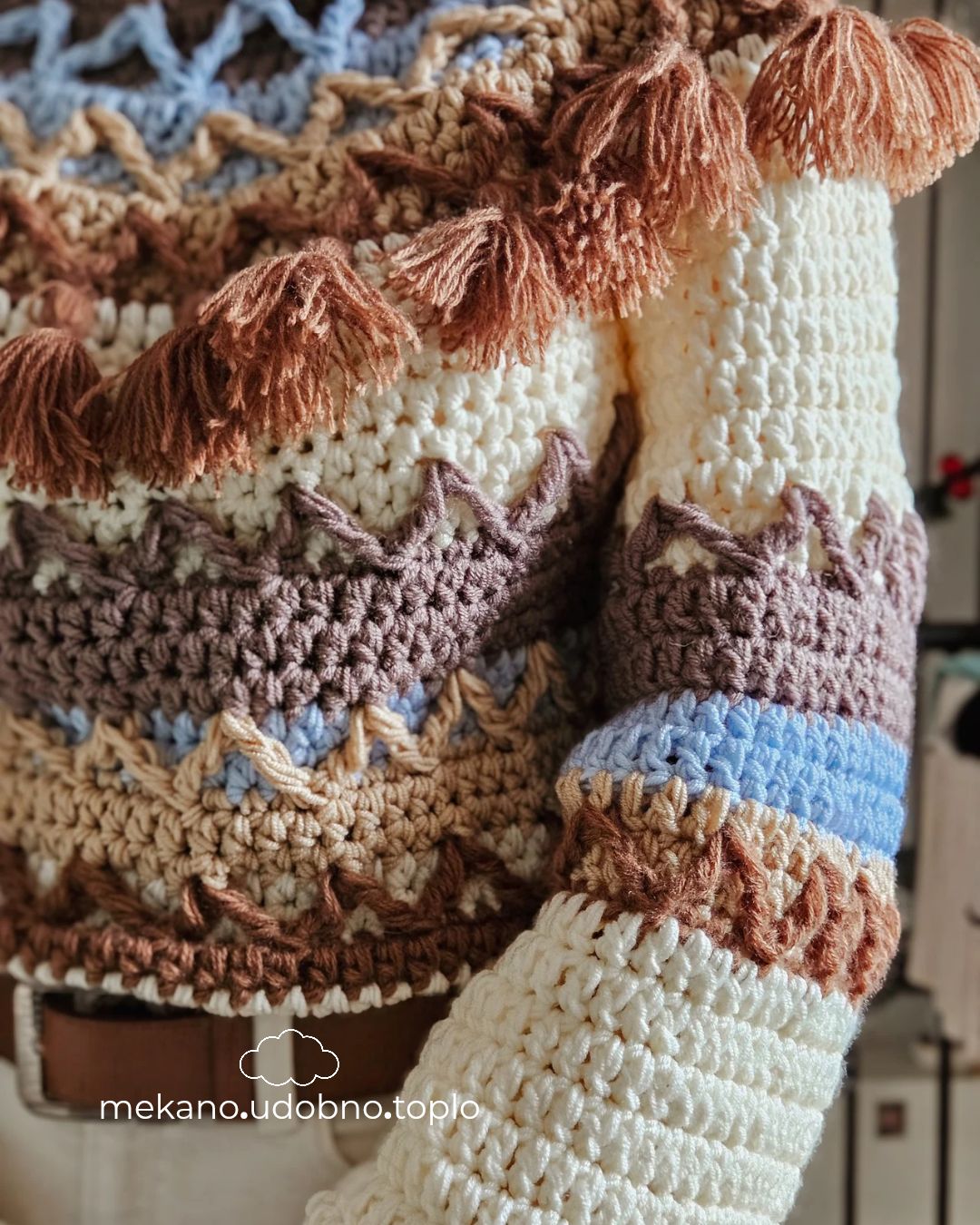Ženski pleteni džemper Heklani džemper u više boja Ženski šareni džemper Ručno pleten džemper